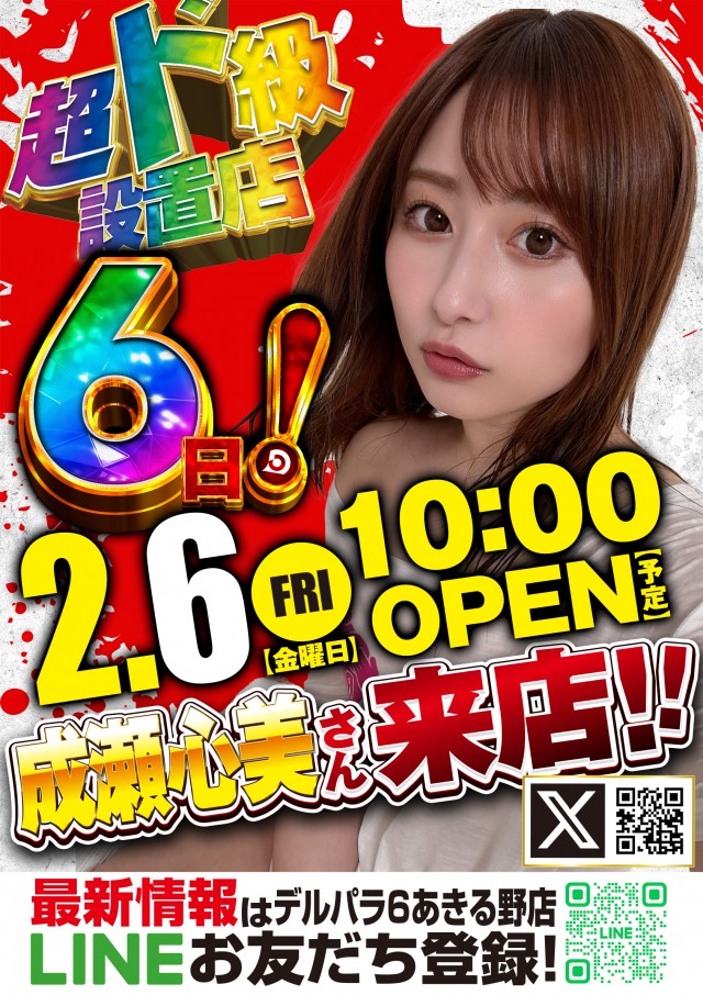 6日!超ド級!!成瀬心美さん来店!!全館10時フルオープン!