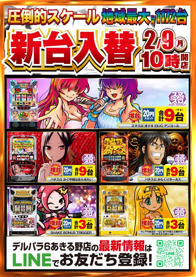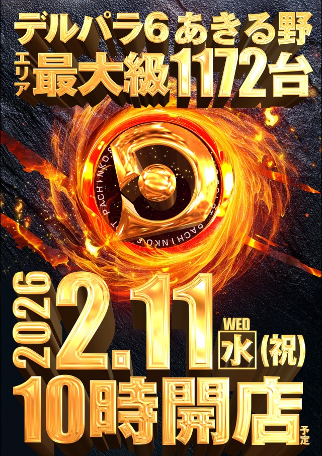 新装3日目!新台打つならデルパラ!!全館10時フルオープン!