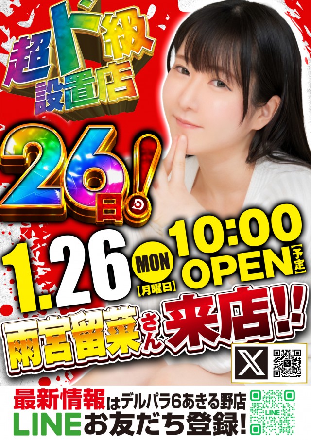 26日超ド級!!雨宮留菜さん来店!全館10時開店!!