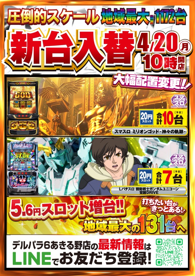 Lミリオンゴッド最新作降臨!!!全館10時フルオープン!!!