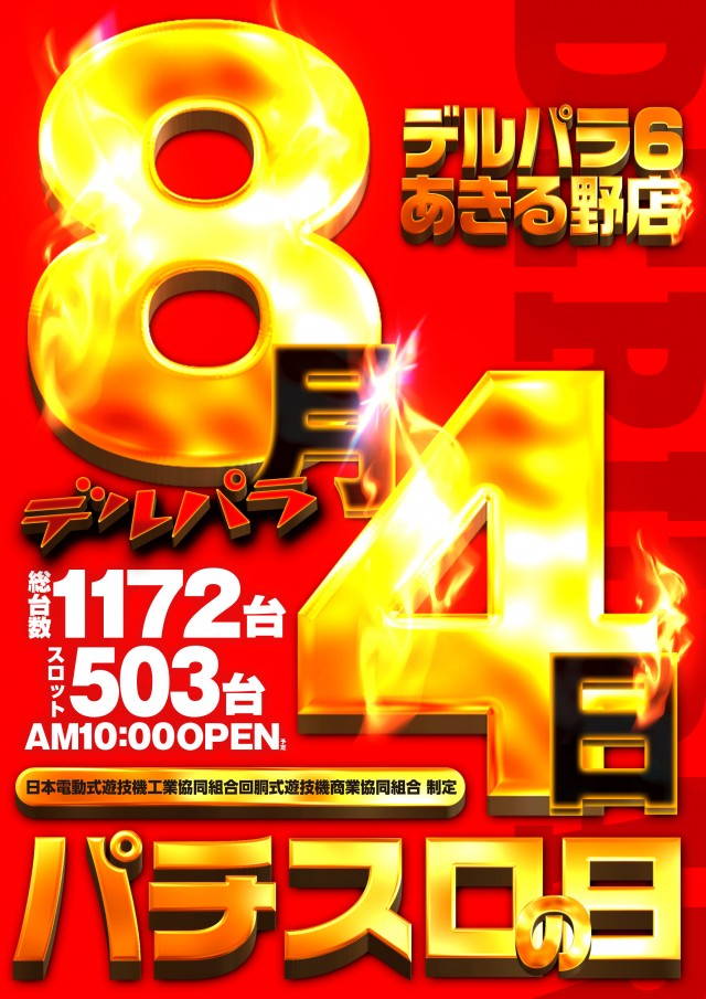 8月4日パチスロの日!!新装全館10時フルオープン!