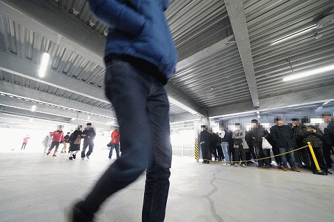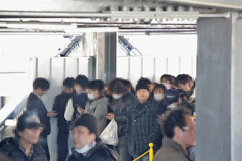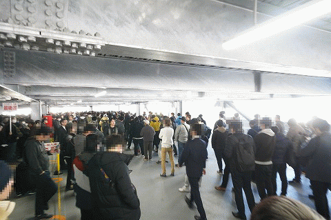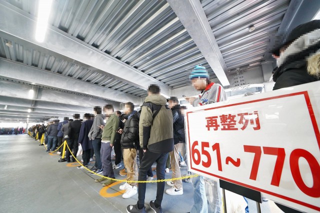 | 行列は混乱を避けるため、3Fと4Fに分けた2階仕様! 整列の手際もスムーズゥッ! |