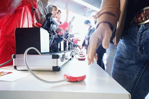 | 台選びは待った無し! ついつい小走りになってしまうファンの姿も。 |