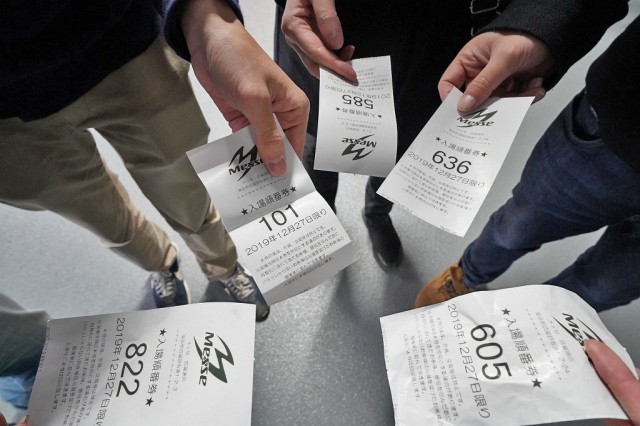 | 楽しそうなファンの皆さん! 1番を引いた人はもちろん嬉しそう。でも、ちょっと微妙な番号だった…なんて人も笑いながら仲間同士で談笑中! やる気満々です! |