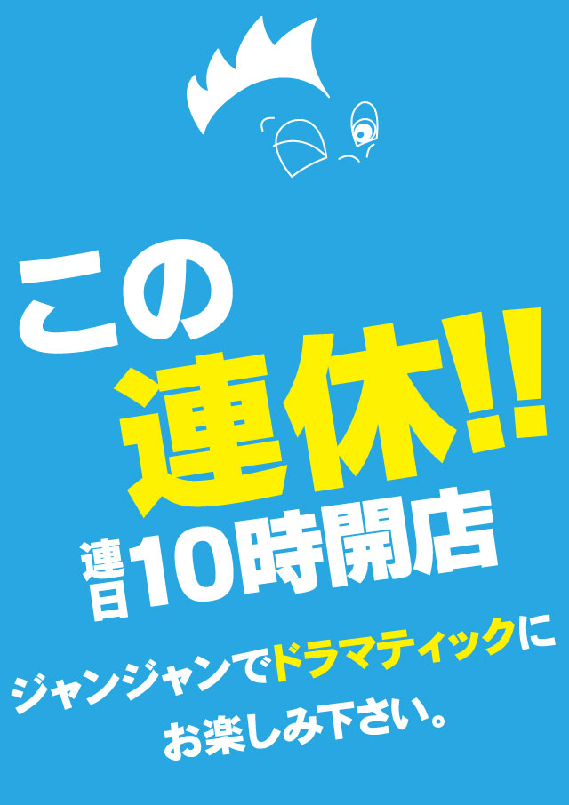 🔥3連休はジャンジャンのスロットが..🔥連日10時OPEN🔥