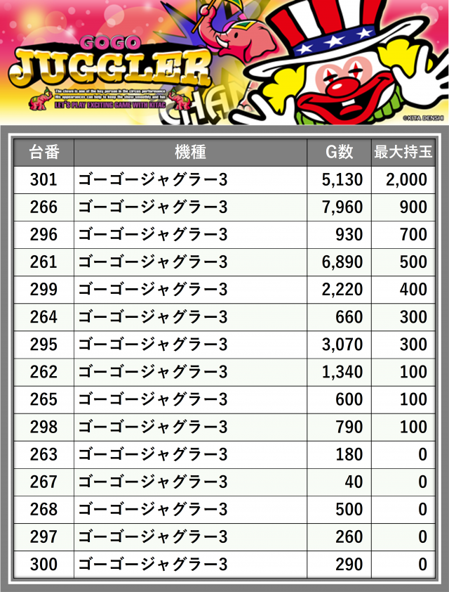 厳選された取材対象機種をはじめ、その他スロット全体から好記録が飛び出した!プレイヤーが楽しんだ1日を下記データにて振り返ってみて欲しい。