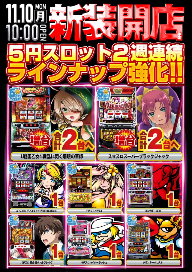 11/10(月)デルパラ10南大沢店新台入替!!