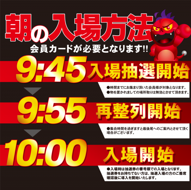 店頭抽選入場の際は別途ご案内致します。 |