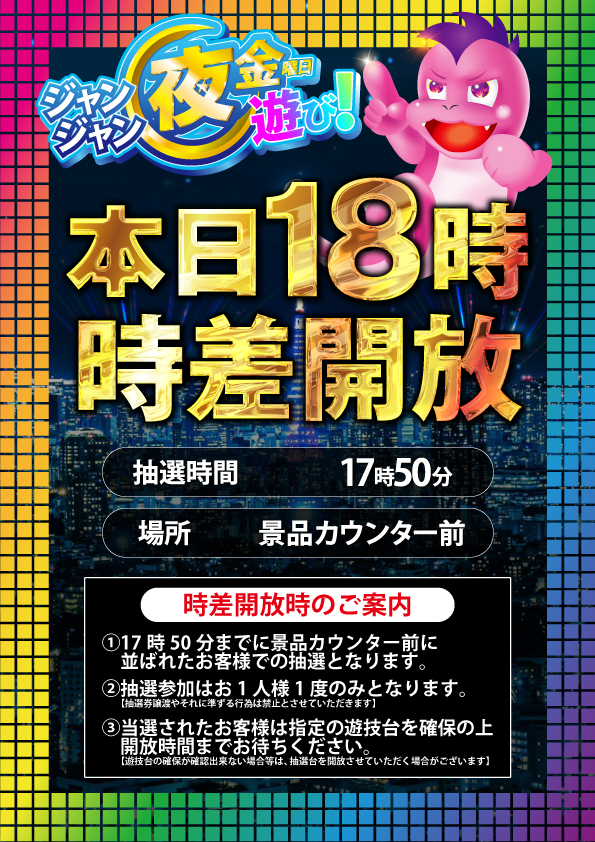 🌈本日18時スロット時差コーナーをご用意‼🌈抽選は17:50