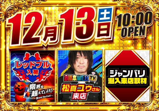 12月13日 楽園立川10時OPEN!