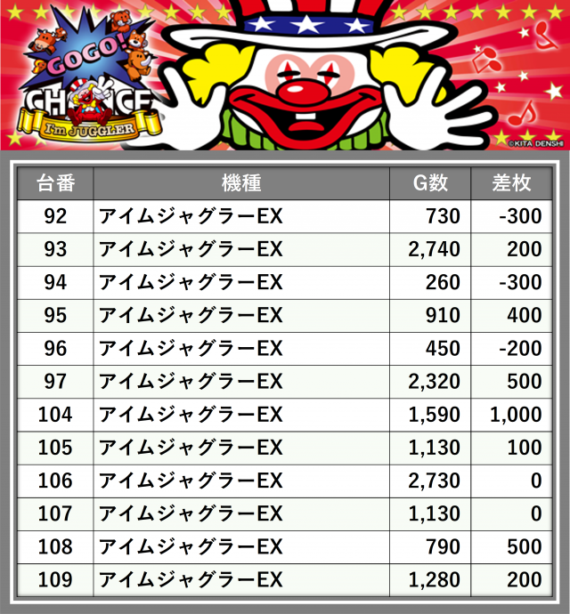厳選された取材対象機種をはじめ、その他スロット全体から好記録が飛び出した!プレイヤーが楽しんだ1日を下記データにて振り返ってみて欲しい。