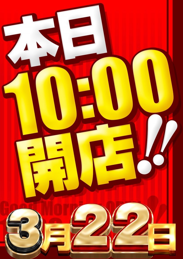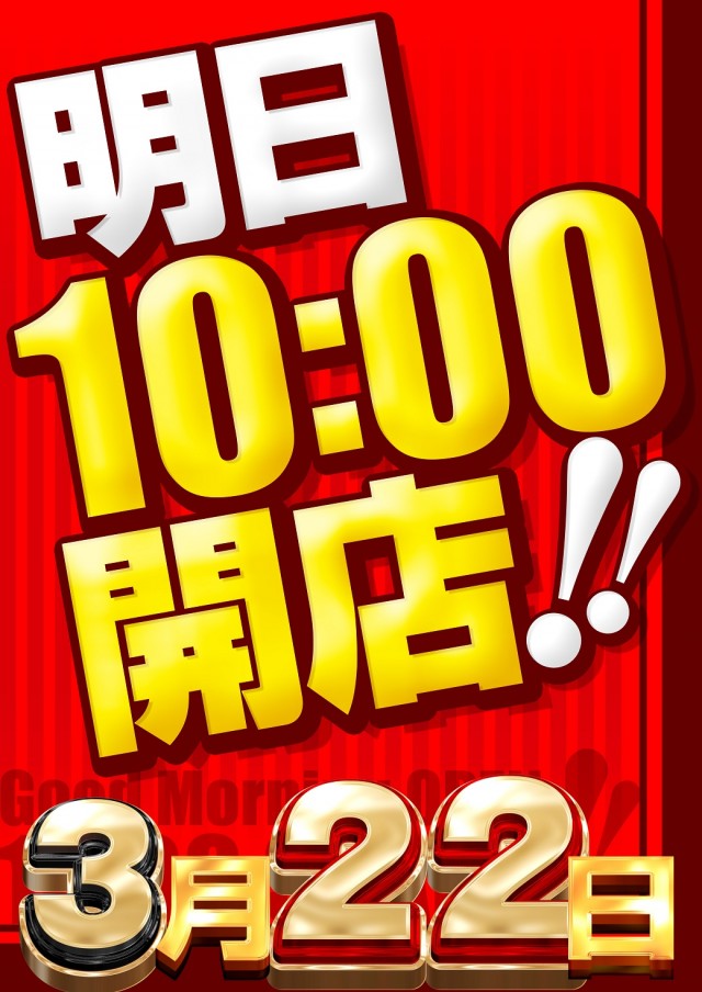 明日3/20(月)✨新台入替✨AM10時開店(予定)!!