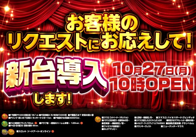 リクエストにお応えして全レート新台導入!! 明日10時開店★