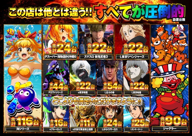 明日10時オープン!! 最新台から人気機種まで勢ぞろい★
