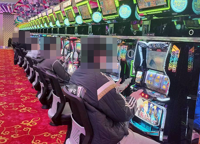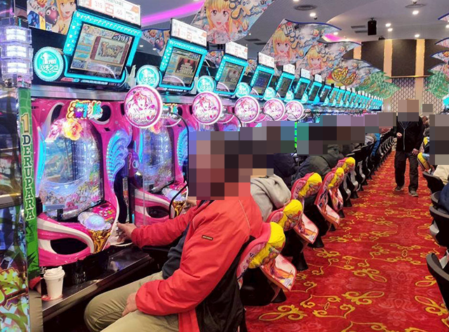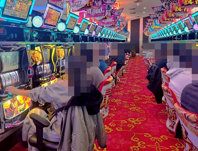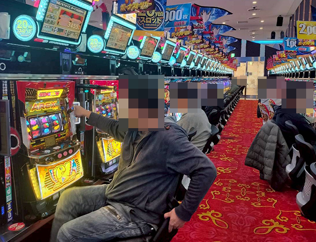 「アレックス ブライト」や「ゴーゴージャグラー3」などに、うれしそうに遊技をおこなっている姿があった。