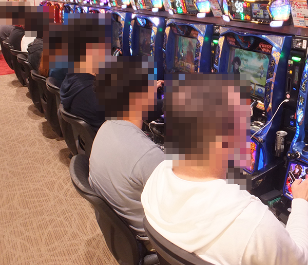 午後の20円パチスロをみるとコーナー全体の盛り上がりが大きく、各シマが明るい雰囲気に包まれていた。