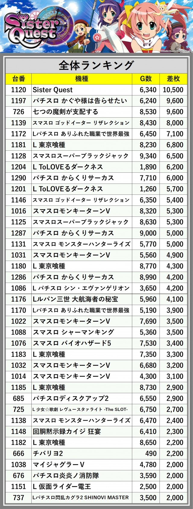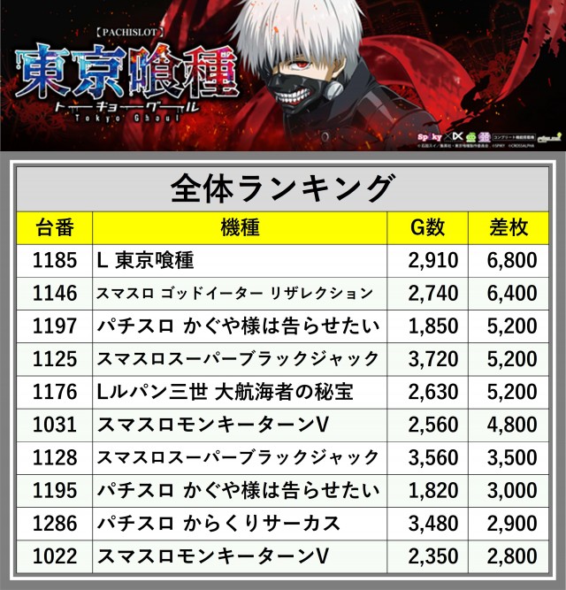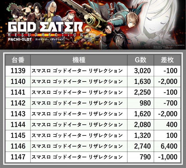 厳選された取材対象機種をはじめ、その他スロット全体から好記録が飛び出した!プレイヤーが楽しんだ1日を下記データにて振り返ってみて欲しい。