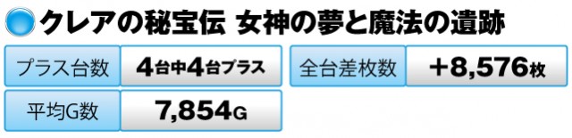 その他では、『クレアの秘宝伝 女神の夢と魔法の遺跡』『パチスロ 超 GANTZ』が、素晴らしい成績を残している。