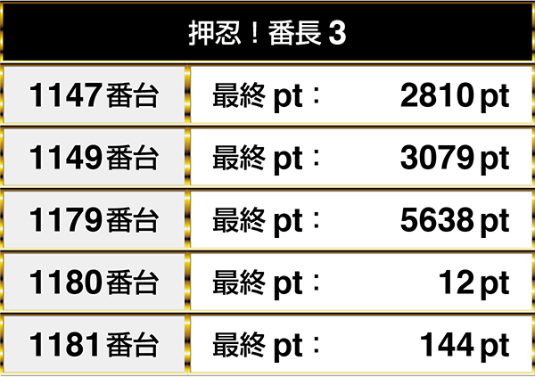 閉店時のデータでは5000ptオーバーを含め、プラスptが連なっている場所もあった。