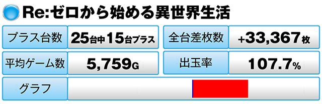 パチスロでは、『Re:ゼロから始める異世界生活』が堂々の成績。
