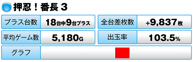 18台中9台がプラスで全台差枚数は+9,837枚をマーク。