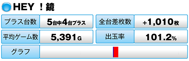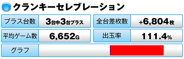 25台中11台がプラスで全台差枚数は+11,162枚だった。