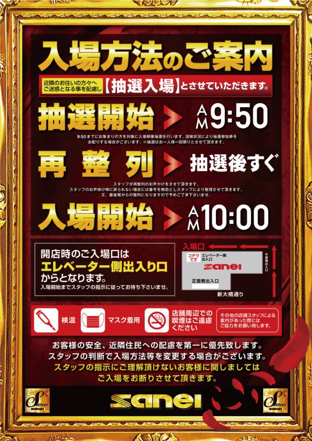 9:50抽選開始、抽選後すぐに入場整列開始 |