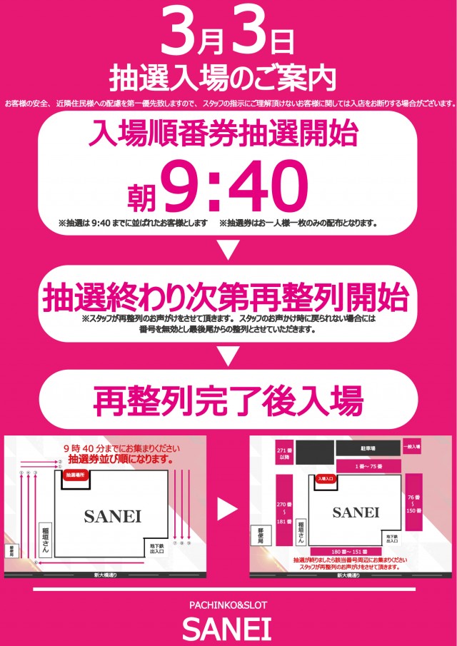 9:50抽選開始、抽選後すぐに入場整列開始 |