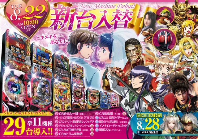 本日8月8日(火)★新台入替★皆様のご来店お待ちしてます♪♪