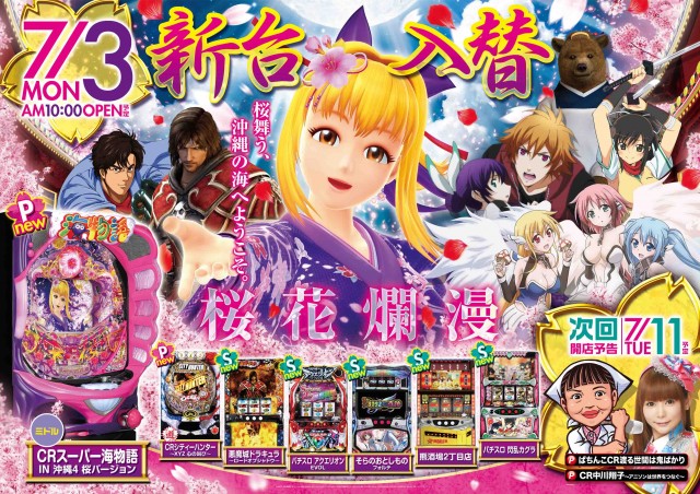 本日新台入替!!沖縄4桜ver.他☆一挙7機種♪21台導入☆
