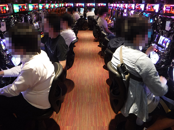開店直後の店内を見ると、20円パチスロの「パチスロ北斗の拳 新伝説創造」をはじめ、「押忍!番長3」や「バジリスク~甲賀忍法帖~絆」などのAT・ART機がほぼ満席となっていた。