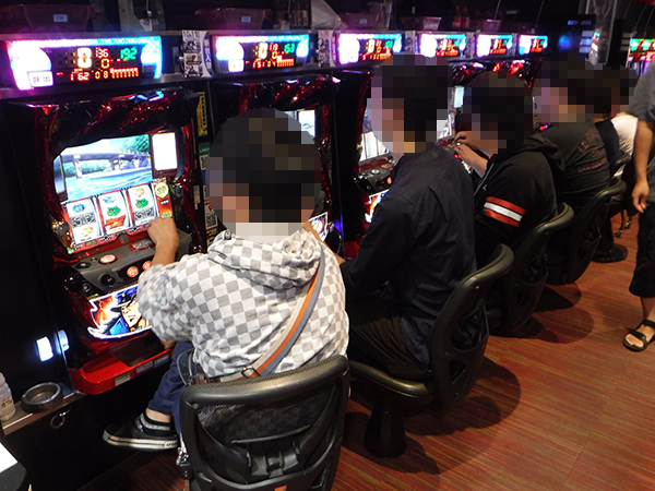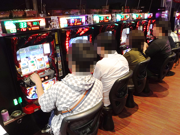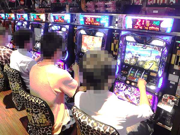 開店直後は、1000円/47枚パチスロが大人気。「押忍!番長3」や「バジリスク~甲賀忍法帖~絆」といった定番機種をはじめ、ほぼすべての機種が満席となっていた。