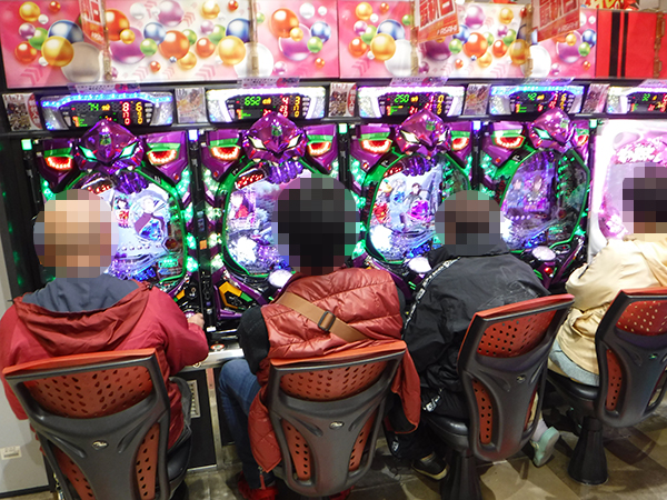 14時過ぎの4円パチンコをうかがうと、朝に引き続き、新台の「CRヱヴァンゲリヲン 2018年モデル」と「CRぱちんこ必殺仕事人Ⅴ 豪剣」が高稼働をキープ。同じく新台の「CRぱちんこテラフォーマーズ 265Ver.」もかなりの注目度であった。