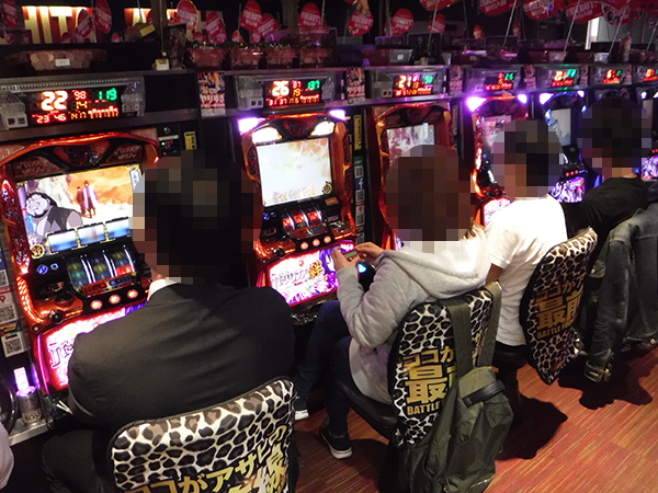 1000円/47枚パチスロもかなりの盛り上がり。「バジリスク~甲賀忍法帖~絆」や「押忍!番長3」など定番機種を筆頭に、かなりの活気が感じられた。