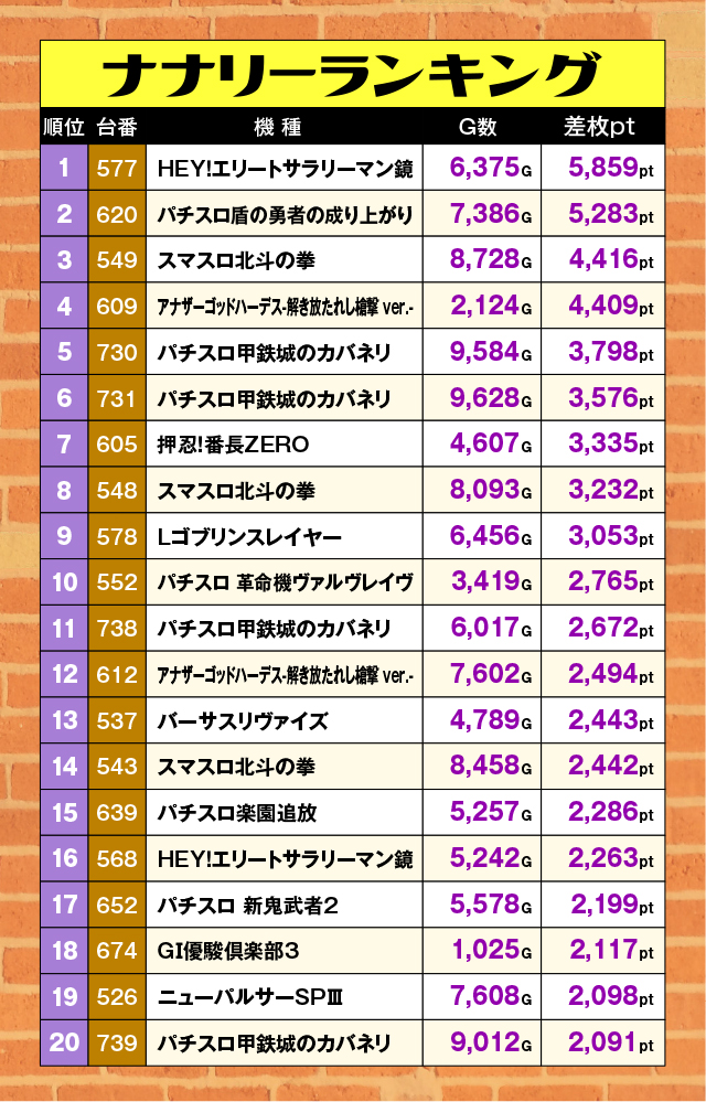 特筆すべきは6,000pt近い記録を残した『HEY!エリートサラリーマン鏡』。また『パチスロ盾の勇者の成り上がり』も5,000ptオーバーを果たしていたぞ!