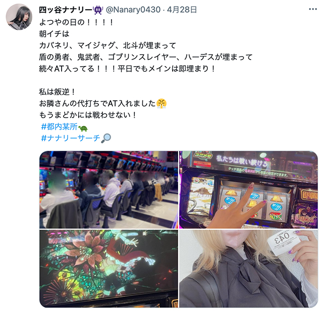 ホール調査能力が非常に高いことで知られている四ッ谷ナナリーが、「新!ガーデン亀戸店」に足を運び、その実力を調べ上げる!遊びに来たお客さんに聞き取り調査を実施し、取材当日の結果を大公開!この結果を元に、次回の「新!ガーデン亀戸店」を攻略せよ!