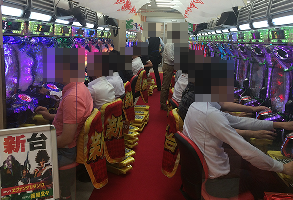 20時頃の4円パチンコをみると、新台の「CRヱヴァンゲリヲン10」や「CR義風堂々!!〜兼続と慶次〜」がほぼ満席。
