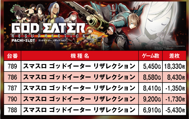 今回は、その中でも特に際立っていた『スマスロ ゴッドイーター リザレクション』の結果をまずは紹介しよう!
