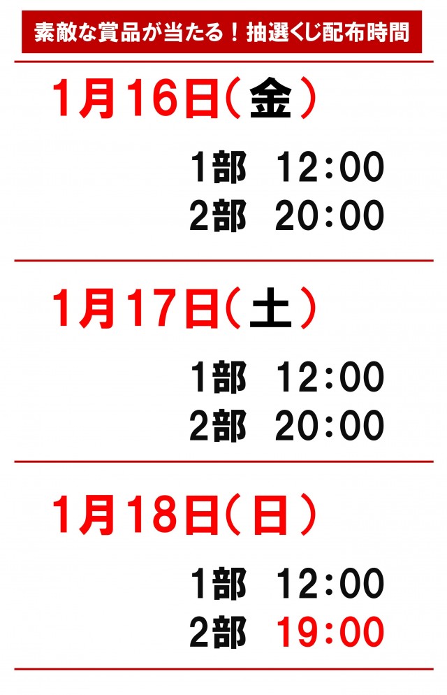 1位 1月5日(月) 2位 1月22日(木) 3位 1月19日(月)