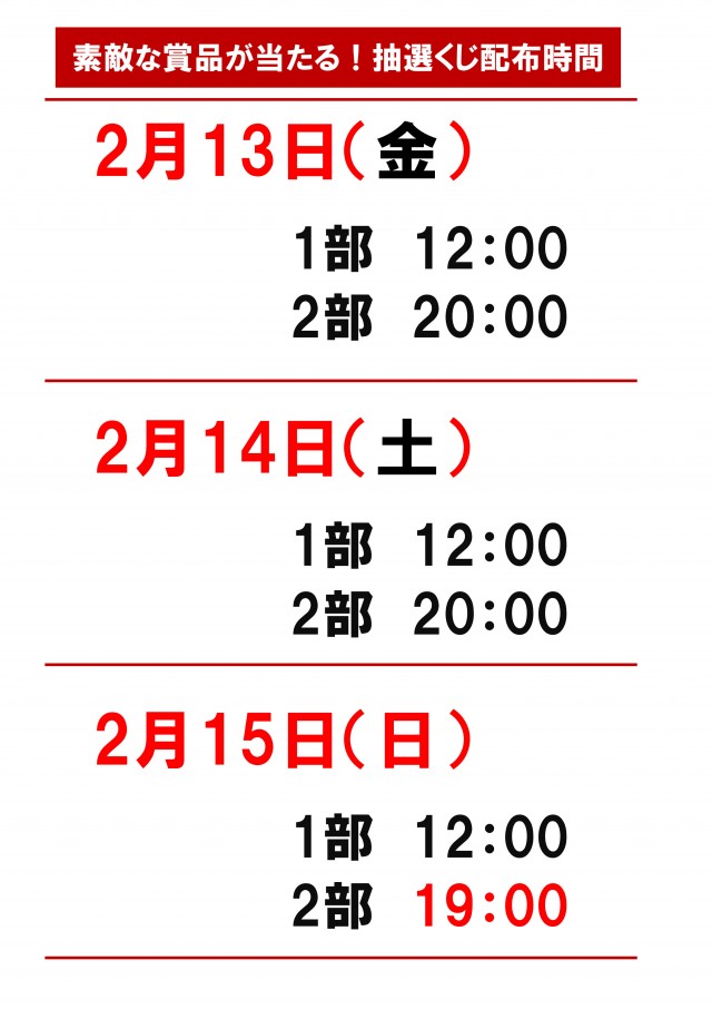 1位 2月2日(月) 2位 1月28日(水) 3位 2月6日(金)