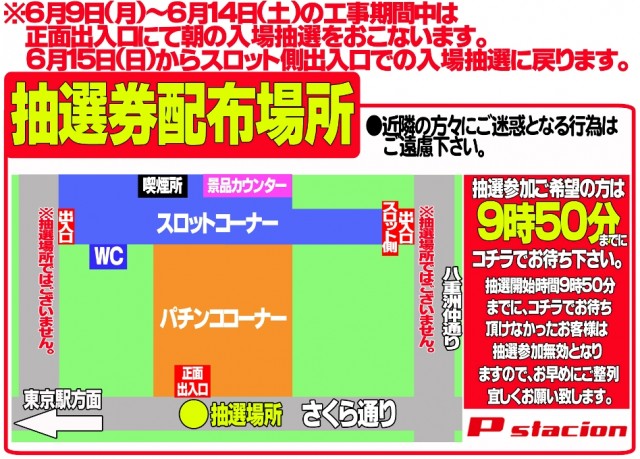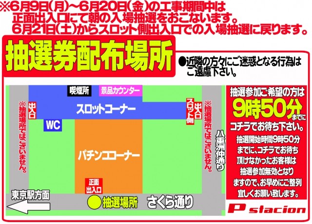 9:50までにお集まり頂いた方のみ整列順に抽選いたします。 |