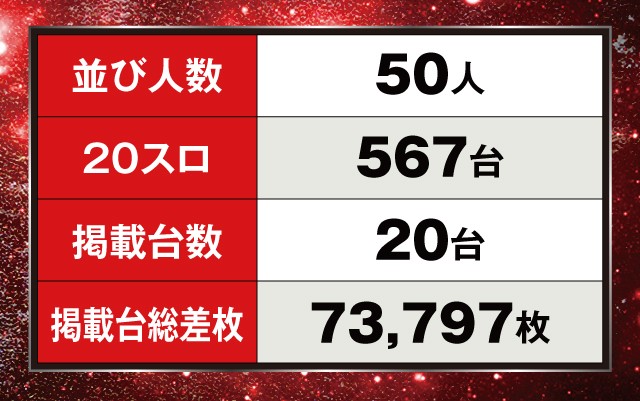 そのほかにも、この日は好調台を含む3~4台並びの注目ポイントが6ヵ所あるなど、様々な仕掛けが施されていたことが印象に残っている。