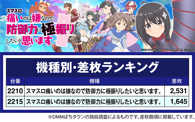 「スマスロ痛いのは嫌なので防御力に極振りしたいと思います。」も2台が1,600ptを超え、2210番台が2,500pt以上となった。