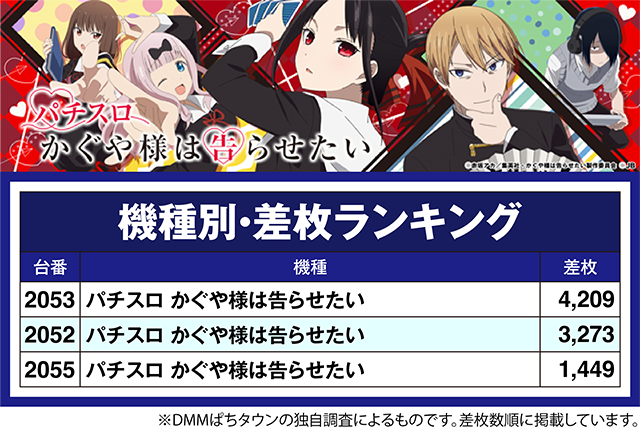 「パチスロ かぐや様は告らせたい」は、3台が1,400ptオーバー。