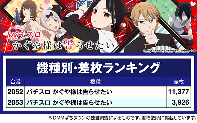 「パチスロ かぐや様は告らせたい」では2052番台が11,000ptを超え、2053番台も4,000ptクラス!