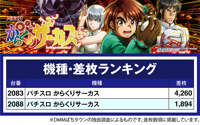 「パチスロ からくりサーカス」では、2083番台が4,260pt。