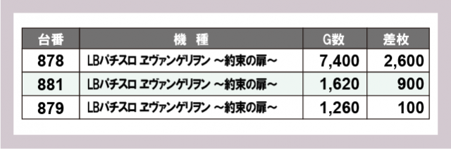 ※台番号順に掲載しています