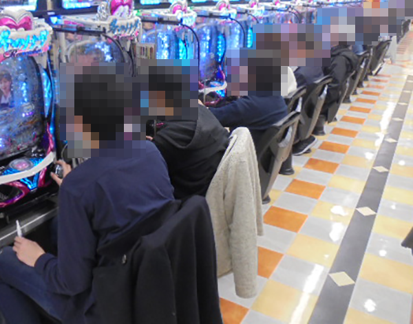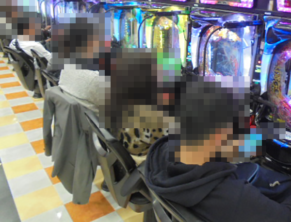 整列場所はパチンコとパチスロで分かれており、パチンコの整列場所にはイスを設置。くつろいだ様子で開店を待っている姿があったことも覚えている。