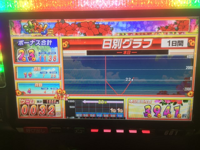 22連の3885枚獲得という大健闘をみせ、実戦終了となりました。