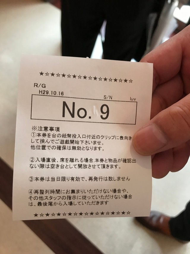 9番を見事ひきあてたTさんはというと、『沖ドキ』でプラス収支、御満悦です。